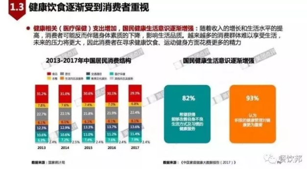 隨著收入的增長和生活水平的提高,消費者可能反而伴隨身體素質的下降,影響生活品質,越來越多的消費群體難以享受生活。消費者在尋求健康飲食、運動健身方面花費了更多力氣。82%居民希望能夠改善自身不良的生活方式及習慣的健康服務;93%認為積極的健康管理對健康更為重要。