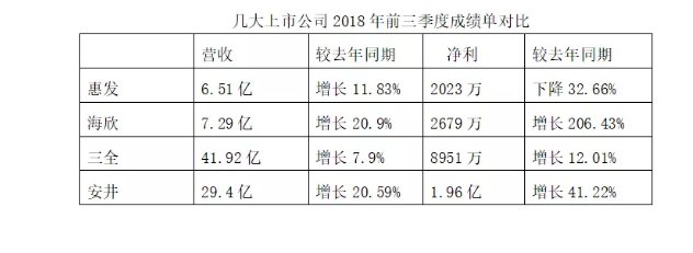 從中不難看出,今年前三季度,營業收入方面,三全以41.92億元的好成績穩居第一。但凈利方面,無論是和同為火鍋料行業上市公司的惠發、海欣對比,還是和速凍米面行業巨頭三全作比較,安井都以1.96億元的成績完勝。
