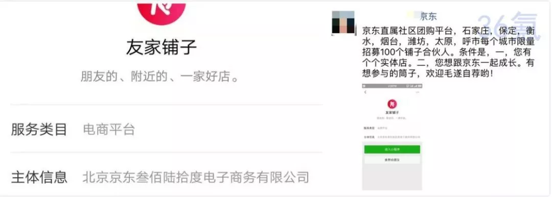 △左圖為“友家鋪子”小程序信息,右圖為“友家鋪子”招募信息