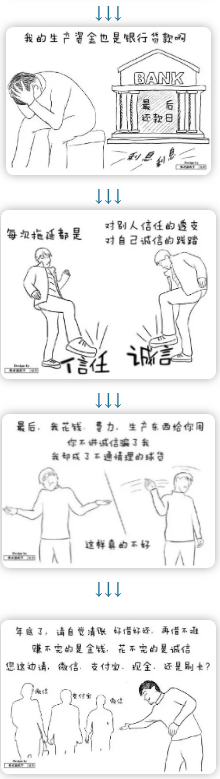 其實,我收欠款也不是存銀行,我也是要付給我的供應商,我的供應商給了我最大的信任和支持,但是我知道他們和我一樣資金緊張。