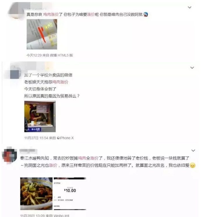 在微博上,已經有不少網友發現了最近的雞肉價格似乎與過往不太一樣。還有不止一位洋快餐小王子表示,連xxx雞肉卷的售價都漲了一塊錢。