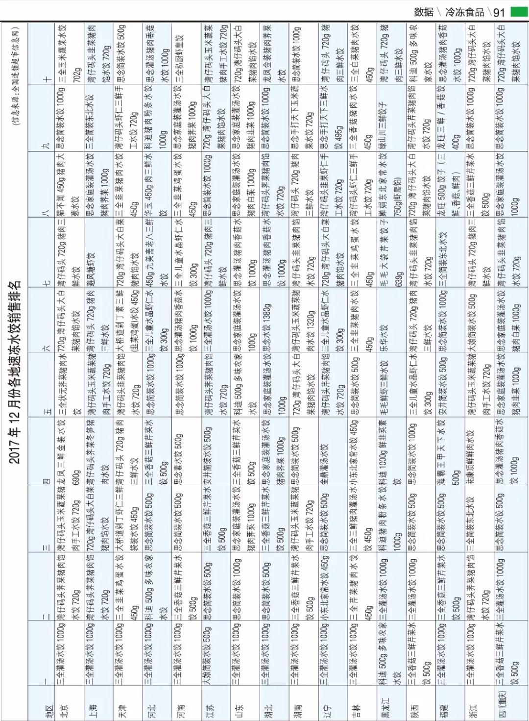 來(lái)源: 冷凍食品網(wǎng) 發(fā)布者:冷凍食品▼2017年12月份各地速凍水餃銷(xiāo)售排名