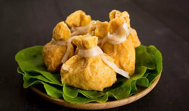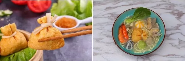 金黃色的小袋子裝得鼓鼓囊囊,有的還會印上“吉”“祥”“如”“意”“福”等字樣。袋口被綁著,里面裝了啥誰也不知道,一口咬下去,鮮美的滋味瞬間給人帶來巨大驚喜。它的功能性也非常強,可用于火鍋、關(guān)東煮、麻辣燙、高端餐廳配菜等。