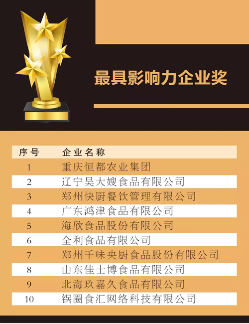 來源: 冷凍食品網(wǎng) 發(fā)布者:編輯8月18日上午,在2019中國冷凍食品產(chǎn)業(yè)大會優(yōu)秀展商頒獎典禮上,最具影響力企業(yè)獎、技術(shù)創(chuàng)新獎、成長新星產(chǎn)品獎、杰出供應(yīng)商獎4大獎項名單滾燙出爐。