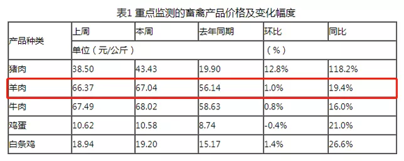 數據還顯示,截至上周,國內牛、羊肉批發價格分別在67.49元/公斤、66.37元/公斤,去年羊肉批發價格高點在60元/公斤左右。