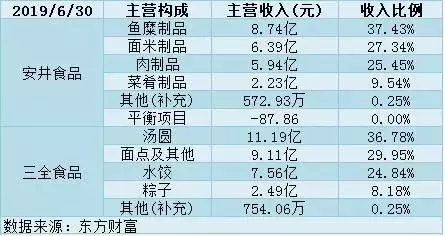 到今年年中,三全食品的面點收入占比已超過水餃,而安井食品各項產(chǎn)品收入占比情況變化不大。