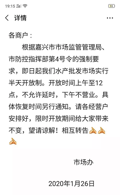 嘉興水產(chǎn)批發(fā)市場則采用了限時開放政策。