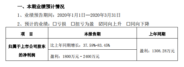 4月10日,海欣食品(002702)發(fā)布今年一季度業(yè)績(jī)預(yù)告:2020年1月1日至2020年3月31日預(yù)計(jì)盈利1800萬元–2400萬元,上年同期盈利1308.28萬元,同比增長(zhǎng)37.59%-83.45%。